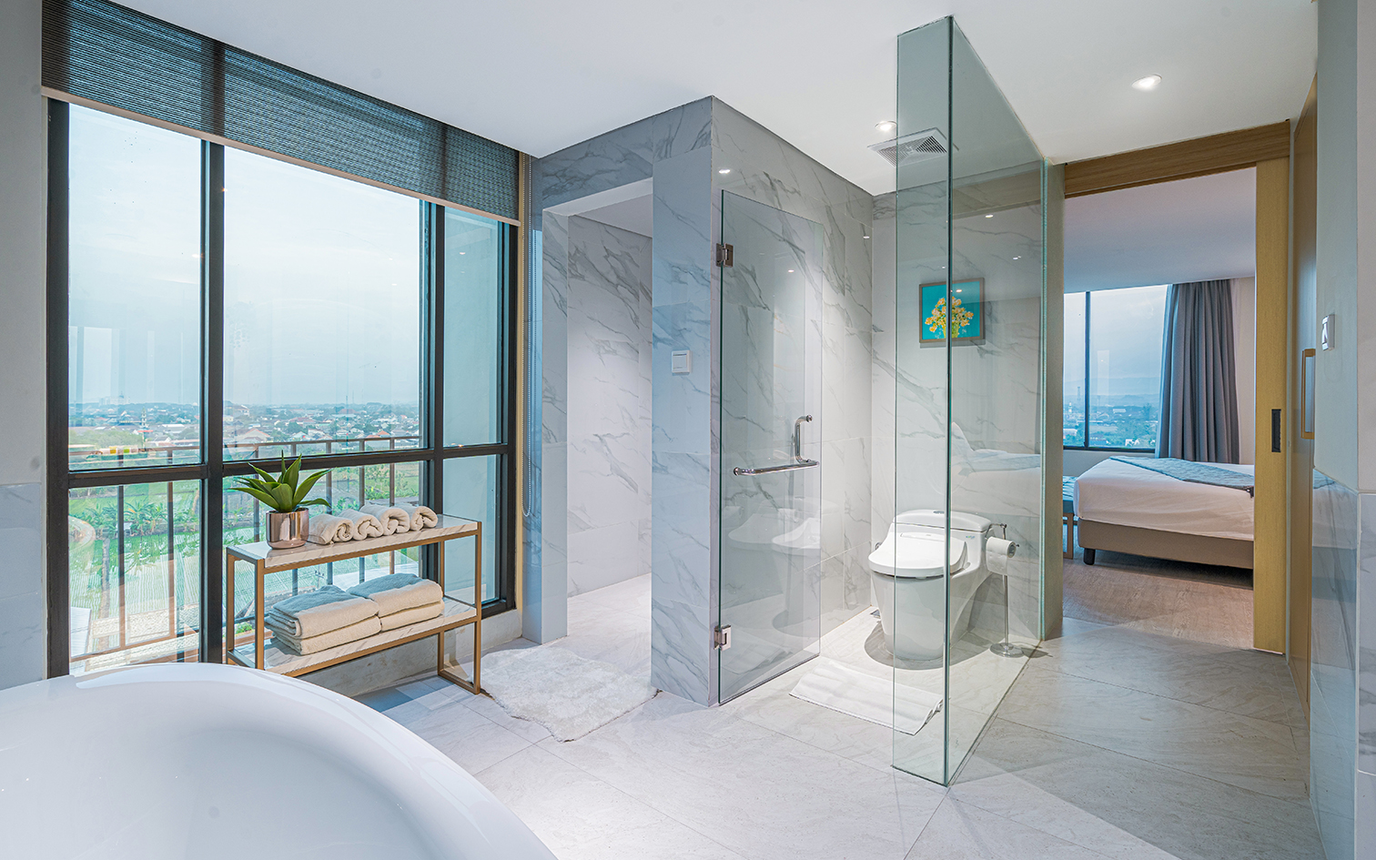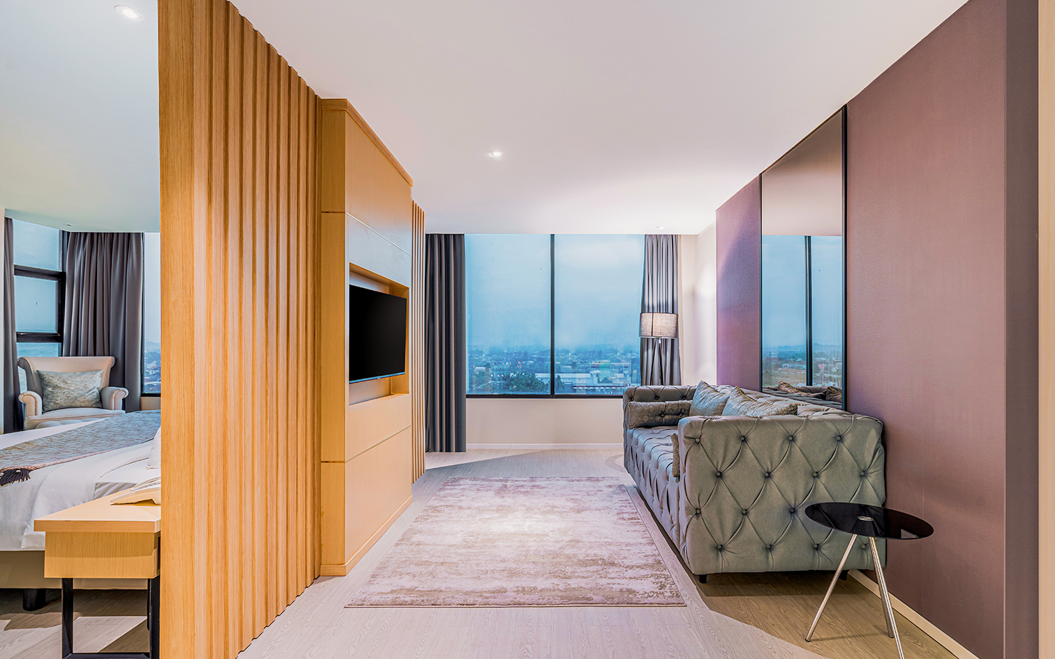 Feel at home in this spacious 120-square meter suite offers a 180-dedgree Bojonegoro's city view, with a plush king bed, a spacious living space and a dining area with pantry, and family room. This is the best suite in town.